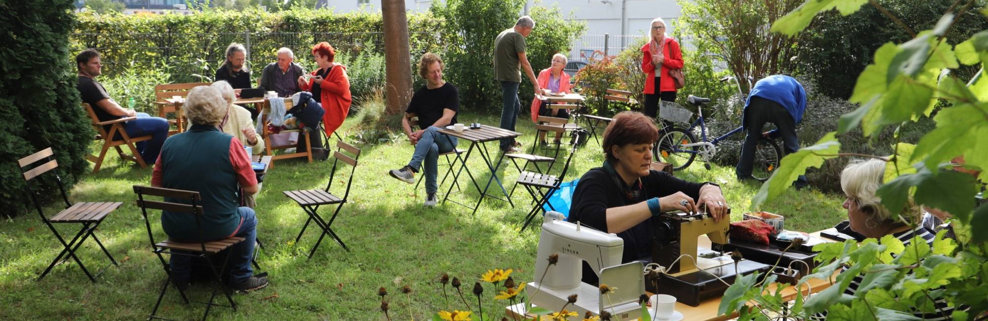 In gemütlicher Atmosphäre, bei Kaffee und Kuchen, wird gemeinsam repariert und Wissen geteilt.